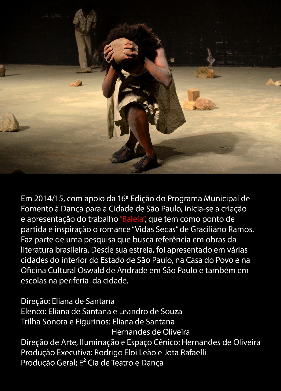 Atuando na cidade de São Paulo desde 1996, realizamos, sob a direção de Eliana de Santana, uma pesquisa que busca investigar no corpo e na cena, poéticas ligadas à temática do sujeito anônimo. Temos como ponto de partida para nossas ações a referência/inspiração na literatura brasileira e na obra de diversos artistas visuais. Veja a seguir um resumo da nossa tragetória e navegue pelo site para apreciar vídeos, fotos e outros materiais sobre as peças do nosso repertório.